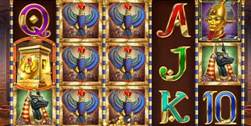 Tauchen Sie ein in das Reich der Symbole: Mit den klassischen Symbolen 10, J, Q, K und A sowie den Symbolen einer Mumie, Anubis, Tutanchamun und Horus geht es um niedrige bis hohe Gewinne. Das Wild-Symbol, ein geheimnisvolles antikes Grabmal, dient zugleich als Scatter und bringt Sie direkt zur begehrten Freispiel-Runde mit dem erweiterndem Spezial-Symbol.
